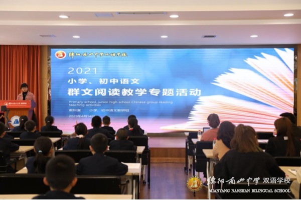 2021年4月14日下午,我校组织开展了小学、初中语文群文阅读教学专题研讨活动,特邀了重庆树人教育研究院特约专家、重庆市高新区含谷中学校长刘娅女士莅临献课并进行专题讲座。绵阳市教育和体育局师培科刘成福科长到场指导工作,绵阳西园学校部分领导及教师,我校相关领导及小学、初中语文学科全体教师到会共同观摩学习。
