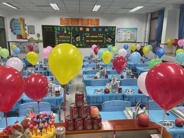 老师和家委会成员早已布置好了教室,将美好的祝福藏在一份份精心准备的礼物里。精心打造的幸福教室等待着许久未见的小朋友们。精心的开学布置,等同学们重启能量奋勇向前。