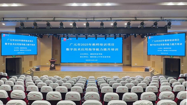 金秋送爽,群贤毕至。2025年10月14日,绵阳南山中学双语学校成功承办了由绵阳师范学院人工智能学院主办的2025年广元市教师培训项目——数字技术应用指导能力提升培训。来自广元市电教系统的60余位教育同仁齐聚双语校园,共探智慧教育新路径,共绘数字赋能新蓝图。