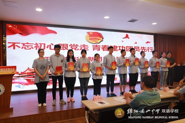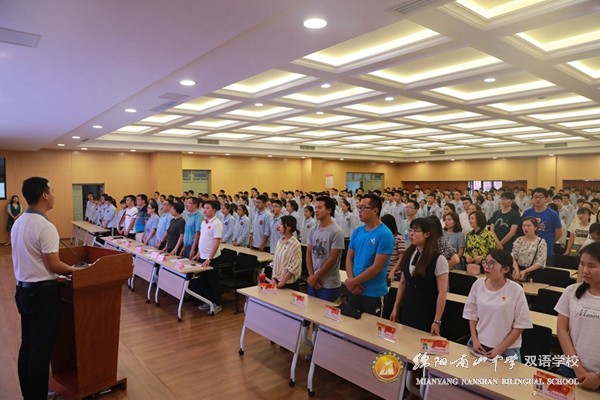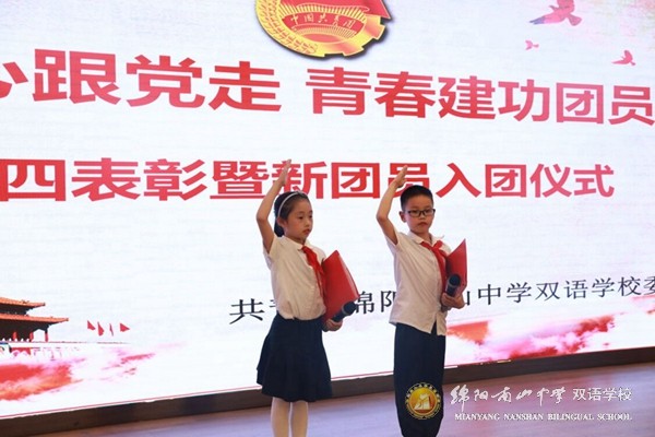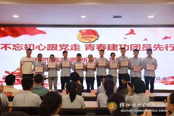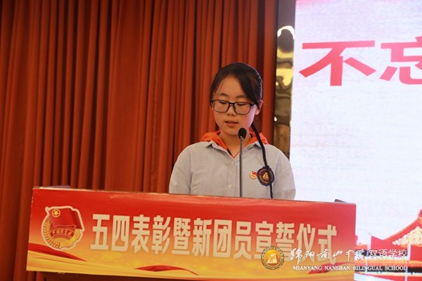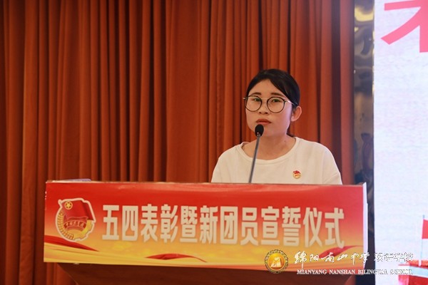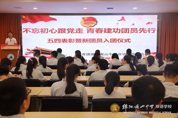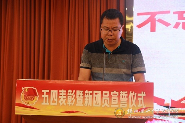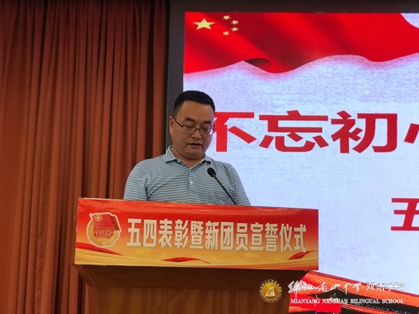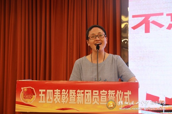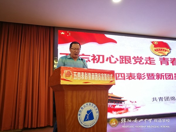 2018年5月3日下午5点,我校五四表彰活动暨新团员入团仪式在综合楼多功能会议室隆重举行,绵阳市教育和体育局团工委赵琰书记,学校党委书记、执行校长蒲文猛同志,学校党委副书记李华平同志,校长助理杨慎勇同志,政教处副主任李奎飞、蒋恩泽、黄李缘同志出席活动,大会由校团委岳智刚老师主持。