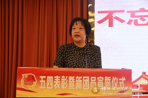 活动在庄严肃穆的国歌声中拉开帷幕。首先,两名少先队员为本次表彰活动献词。他们的声音稚嫩却饱含深情,充满了期待。会上,市教育和体育局团工委赵琰书记为本次大会致辞。她希望“青少年要像初升的太阳,用青春拥抱时代,用激情点燃未来,在最美的年华绽放属于自己的光彩”。接着,学校党委书记、执行校长蒲文猛同志发表讲话。他强调“共青团员是党的预备军,而青少年是祖国的未来,青年教师则是学校发展的中坚力量”。