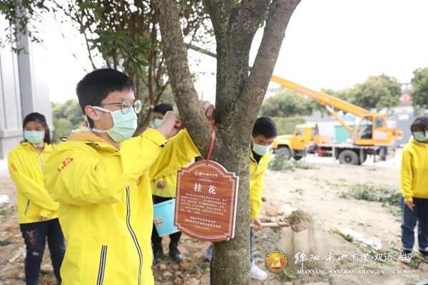蒲文猛校长、杨慎勇校长助理率领双语学生代表到达南山中学,向南山中学赠送了18株桂花树,既为抗疫添春送暖,用树寄抗疫必胜的信念,也为环保助力,为绿水青山梦铺路。