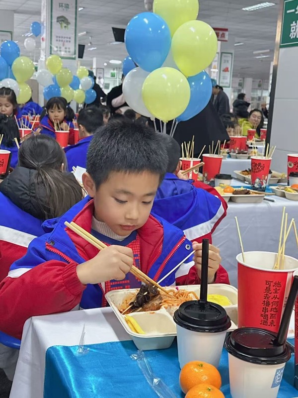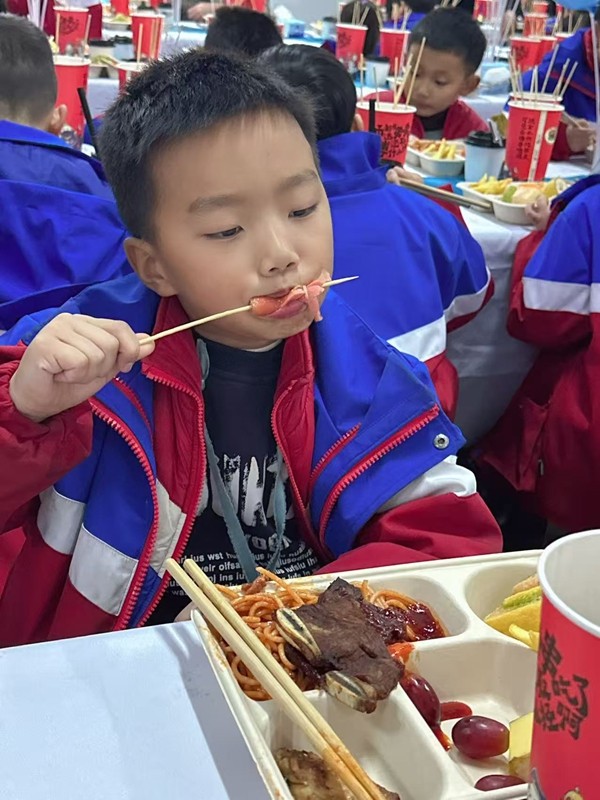 经过一番忙碌,各小组的成果纷纷亮相:造型可爱的水果拼盘、花式面点、钵钵鸡串、香煎牛排、美味薯条、可乐鸡翅等菜肴承载着满满的成就。在共享品尝环节,老师与同学及家长互相点赞、虚心学习,在交流中感受分享的快乐。班级老师引导大家思考“每一餐背后的辛劳”,让珍惜粮食、感恩教育的种子在心中悄然生根。